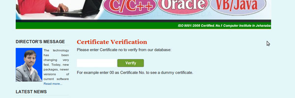 Among many of websites we have designed & developed for many businesses from Bihar, Jharkhand of different sectors there are few clients from education sector. One of our esteemed client in computer education from Bihar DCC Infotech requested us to develop and integrate an custom application to make there CERTIFICATE Verification system Online.